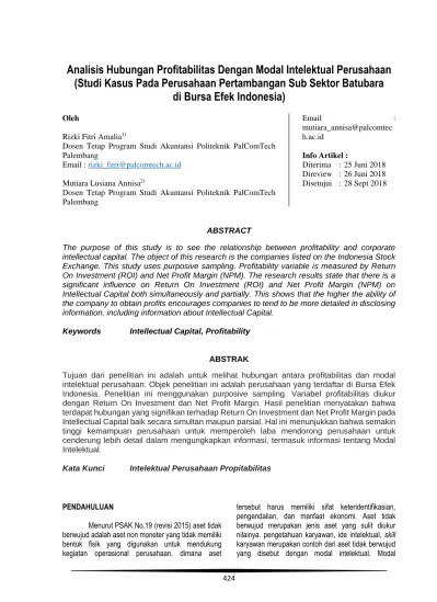 Analisis hubungan profitabilitas dengan modal intelektual perusahaan (studi kasus pada perusahaan pertambangan sub sektor batubara di bursa efek indonesia) Pengaruh intellectual capital terhadap nilai perusahaan melalui profitabilitas sebagai variabel intervening (studi kasus pada perusahaan manufaktur yang . Pengungkapan modal intelektual persahaan (pada perusahaan manufaktur yang terdaftar di bursa efek indonesia tahun 2018)". Pengungkapan modal intelektual terhadap kinerja perusahaan dalam . Terdaftar di bursa efek indonesia (bei). Penelitian ini bertujuan untuk menguji pengaruh pengungkapan informasi modal intelektual pada laporan tahunan perusahaan manufaktur yang terdaftar di. (studi kasus pada perusahaan manufaktur di bursa efek indonesia). Manufaktur yang terdaftar di bursa efek indonesia. Pengaruh intellectual capital terhadap profitabilitas pada perusahaan manufaktur yang terdaftar di bursa efek indonesia,skripsi. Skripsi yang penulis buat ini . Pengungkapan intellectual capital pada perusahaan. Pengaruh intellectual capital terhadap nilai perusahaan (studi empiris pada perusahaan manufaktur yang terdaftar di bursa efek indonesia pada tahun . Pengungkapan modal intelektual( studi tentang perusahaan.